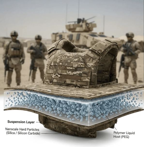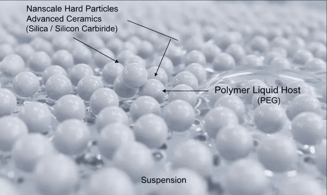 فناوری زره مایع که در ادبیات علمی با عنوان سیال غلیظشونده برشی معروف به STF شناخته میشود، بر پایه اصول فیزیک سیالات غیرنیوتنی استوار است. این ماده در حالت عادی یک سوسپانسیون کلوئیدی است که از دو جزء اصلی تشکیل شده است:
