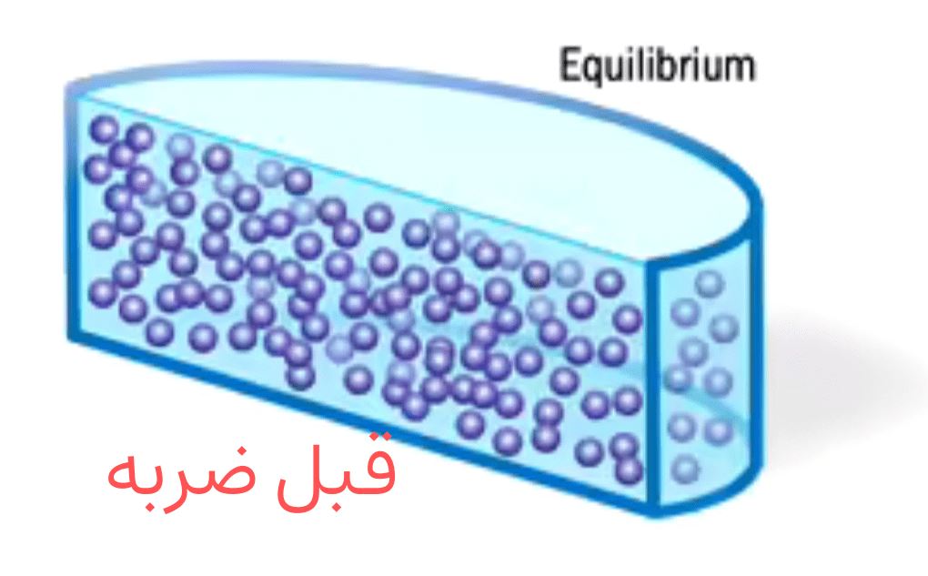 در ادامه تصاویر حالت مولکولی شبیهسازی شده از حالت قبل و بعد ضربه به زره را مشاهده میکنید که پیش از برخورد، ذرات موجود در سیال با غلظت برشی در حالت تعادل قرار دارند و پس از برخورد، آنها به یکدیگر میچسبند و ساختارهای جامد تشکیل میدهند.
