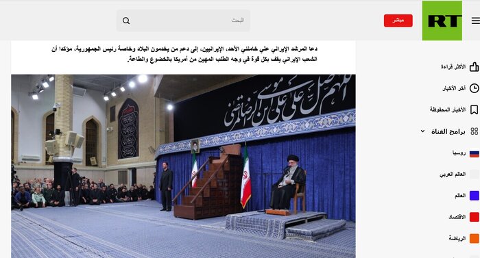 شبکه روسیا الیوم نیز با عنوان «رهبر ایران خواستار حمایت از پزشکیان» شد، نوشت: رهبر ایران ملت این کشور را به حمایت از خدمتگزاران کشور به ویژه رئیس جمهور فراخواند و تأکید کرد که ملت ایران با قدرت در برابر توقع اهانتآمیز آمریکا در خصوص تسلیم شدن و گوش به فرمان بودن، میایستد.